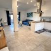La casa ha un accesso indipendente nella strada privata con parcheggio riservato, un giardino con doccia esterna e tanto spazio; l'abitazione si trova al primo piano, il grande open space è occupato dalla cucina con penisola (che permette anche di cucinare ammirando il mare!), equipaggiata con le più moderne attrezzature tra cui piano ad induzione e lavastoviglie, perfetta per gli amanti della cucina che desiderano creare prelibatezze culinarie con la brezza marina come compagna. Il soggiorno con tv led e divano (che può diventare divano letto e ospitare fino a 6 persone), si affaccia sulla veranda dove ci si può immergere completamente nella bellezza del paesaggio marino.